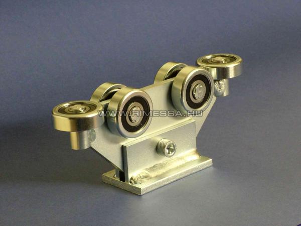 G4 görgõcsoportunk a legnépszerûbb görgõrendszer a C60 profilokhoz kínált görgõk közül. 4 függõleges teherviselõ és 1 középsõ megvezetõ görgõvel rendelkezik. Függõleges teherbírása 1000 KP, vízszintes teherbírása 250 KP. A rozsdamentes görgõk és a horganyzott talprendszer hosszú élettartamot biztosít. Önbeálló kivitel, megkönnyítve a kapu mûködését.