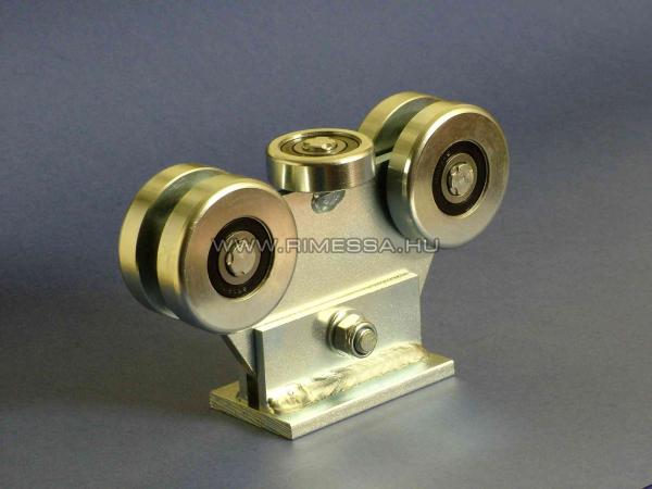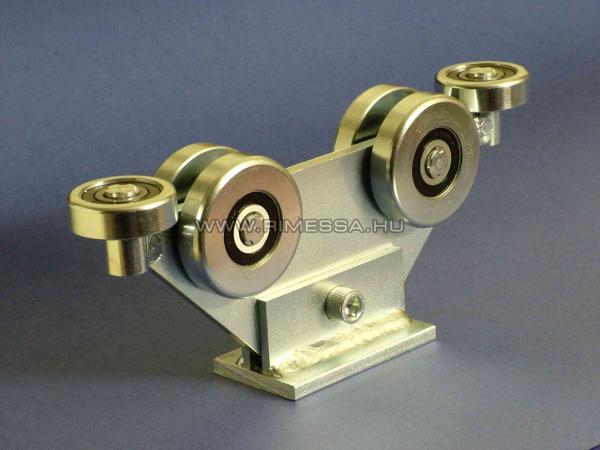 G20 görgõcsoportunk a legkisebb 5 csapágyas görgõrendszer a C60 profilokhoz kínált görgõk közül. 4 függõleges teherviselõ és 1 középsõ megvezetõ görgõvel rendelkezik. Függõleges teherbírása 800 KP, vízszintes teherbírása 150 KP. A rozsdamentes görgõk és a horganyzott talprendszer hosszú élettartamot biztosít. Önbeálló kivitel, megkönnyítve a kapu mûködését. |
