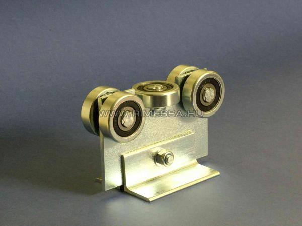 G20 görgõcsoportunk a legkisebb 5 csapágyas görgõrendszer a C60 profilokhoz kínált görgõk közül. 4 függõleges teherviselõ és 1 középsõ megvezetõ görgõvel rendelkezik. Függõleges teherbírása 800 KP, vízszintes teherbírása 150 KP. A rozsdamentes görgõk és a horganyzott talprendszer hosszú élettartamot biztosít. Önbeálló kivitel, megkönnyítve a kapu mûködését. |