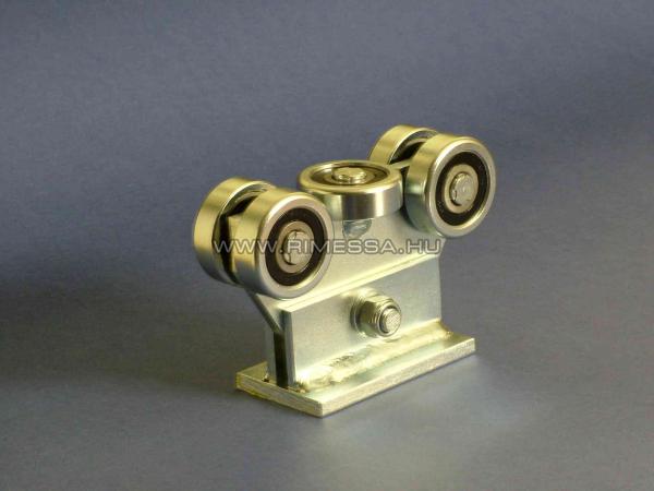 G11/5 görgõcsoportunk a kisebbik görgõrendszer a C65 profilokhoz kínált görgõk közül. 4 függõleges teherviselõ és 1 középsõ megvezetõ görgõvel rendelkezik. Függõleges teherbírása 1000 KP, vízszintes teherbírása 200 KP. A rozsdamentes görgõk és a horganyzott talprendszer hosszú élettartamot biztosít. Önbeálló kivitel, megkönnyítve a kapu mûködését.