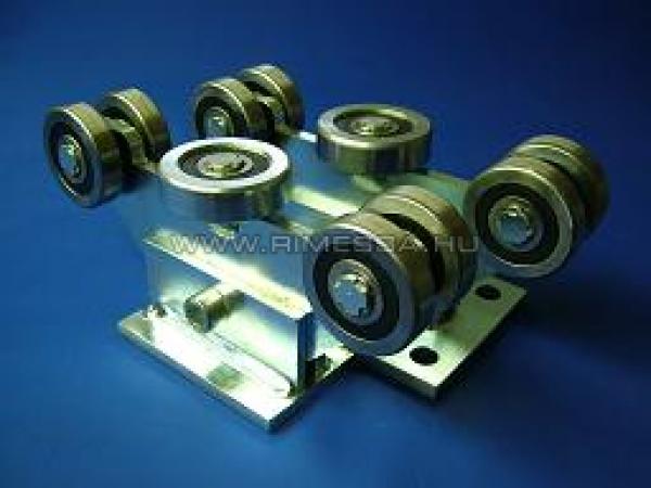 G8 görgõcsoportunk a kisebb görgõrendszer a C80 profilokhoz kínált görgõk közül. 4 függõleges teherviselõ és 1 középsõ megvezetõ görgõvel rendelkezik. Függõleges teherbírása 1400 KP, vízszintes teherbírása 250 KP. A rozsdamentes görgõk és a horganyzott talprendszer hosszú élettartamot biztosít. Önbeálló kivitel, megkönnyítve a kapu mûködését.